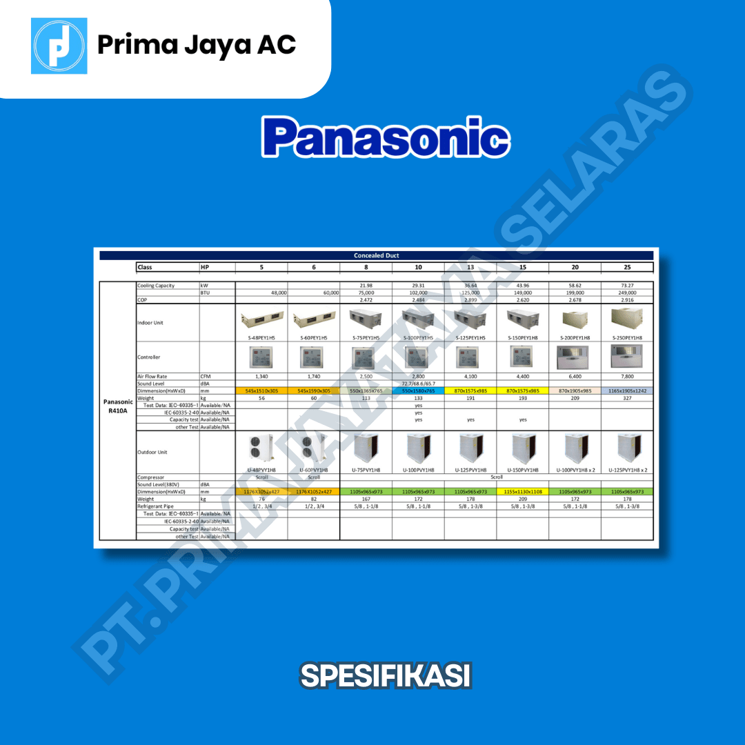 Spesifikasi AC PANASONIC DUCT NON-INVERTER 10PK S-100PEY1H5
