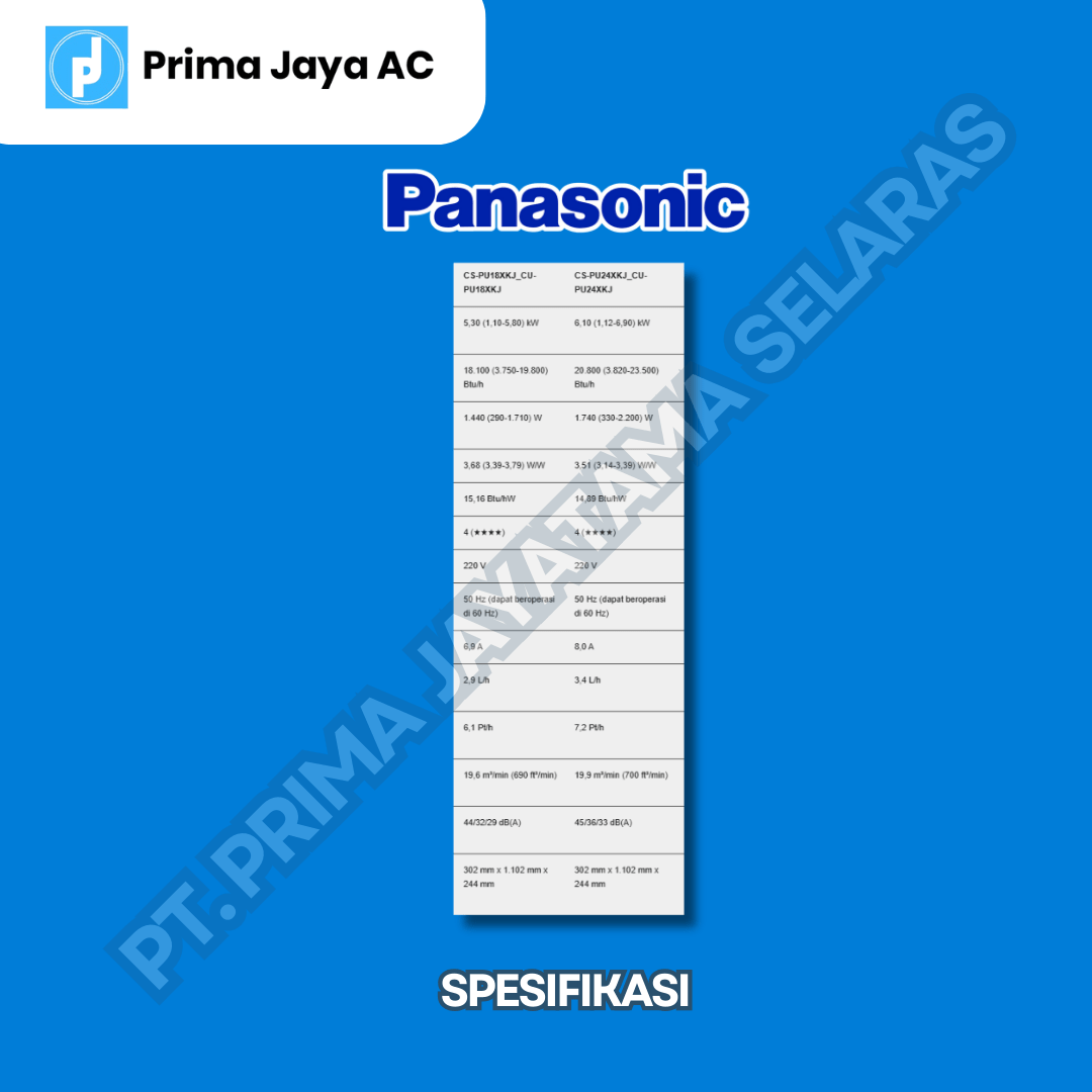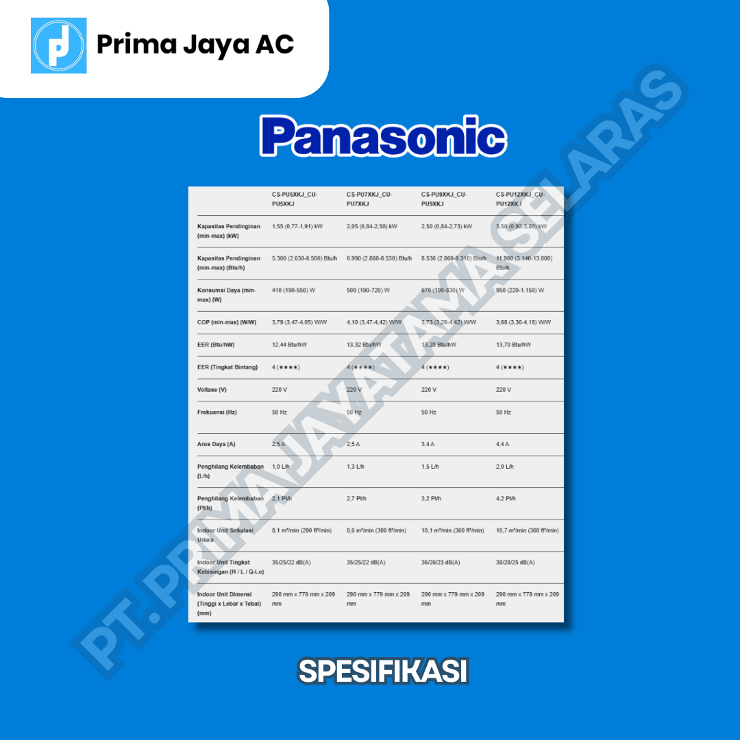 Spesifikasi AC PANASONIC SPLIT INVERTER 1/2PK CS-XPU5XKJ