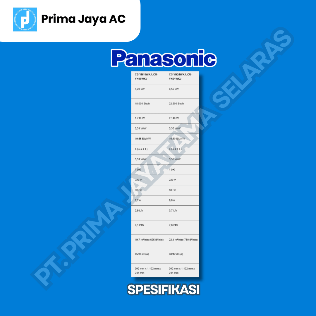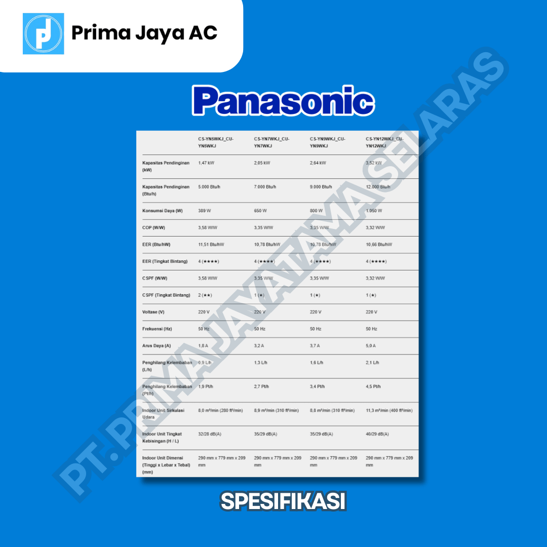 SPESIFIKASI PANASONIC CS-YN9WKJ AC SPLIT 1PK STANDARD PUTIH